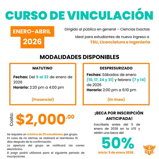 Nuestro Curso de Vinculación 2026 ya está abierto y trae modalidades flexibles, costo accesible y beca del 50% por inscripción anticipada.